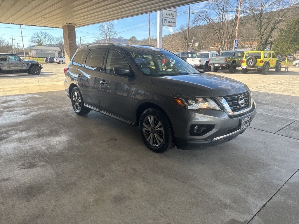 Moss Motor Company is pleased to offer this 2019 Nissan Pathfinder SL in Gun Metallic equipped with: 3rd row seats: bench, 4-Wheel Disc Brakes, 5.25 Axle Ratio, 6 Speakers, ABS brakes, Air Conditioning, Alloy wheels, AM/FM radio: SiriusXM, AM/FM/CD Audio System, Auto-dimming Rear-View mirror, Automatic temperature control, Blind Spot Warning, Bluetooth / Hands Free Cell Phone, Bose Premium Audio System, Brake assist, Bumpers: body-color, Carpeted Floor Mats (4-pc Set), CD player, Compass, Delay-off headlights, Driver door bin, Driver vanity mirror, Dual front impact airbags, Dual front side impact airbags, Electronic Stability Control, Emergency communication system: NissanConnect Services, Four wheel independent suspension, Front anti-roll bar, Front Bucket Seats, Front Center Armrest, Front dual zone A/C, Front fog lights, Front reading lights, Fully automatic headlights, Garage door transmitter: HomeLink, Heated door mirrors, Heated Front Bucket Seats, Heated front seats, Heated rear seats, Heated steering wheel, Illuminated entry, Leather Seating Surfaces, Leather Shift Knob, Leather steering wheel, Low tire pressure warning, Memory seat, Navigation System, NissanConnect w/Navigation & Services, Occupant sensing airbag, Outside temperature display, Overhead airbag, Overhead console, Panic alarm, Passenger door bin, Passenger vanity mirror, Power door mirrors, Power driver seat, Power Liftgate, Power passenger seat, Power steering, Power windows, Radio data system, Rear air conditioning, Rear anti-roll bar, Rear Back Up Camera, Rear Parking Sensors, Rear reading lights, Rear seat center armrest, Rear window defroster, Rear window wiper, Reclining 3rd row seat, Remote keyless entry, Roof rack: rails only, Security system, SiriusXM Traffic, Speed control, Speed-sensing steering, Speed-Sensitive Wipers, Split folding rear seat, Spoiler, Steering wheel mounted audio controls, Tachometer, Telescoping steering wheel, Tilt steering wheel, Traction control, Trip computer, Turn signal indicator mirrors, Variably intermittent wipers, and Wheels: 18" x 7.5 J Machined Aluminum-Alloy!