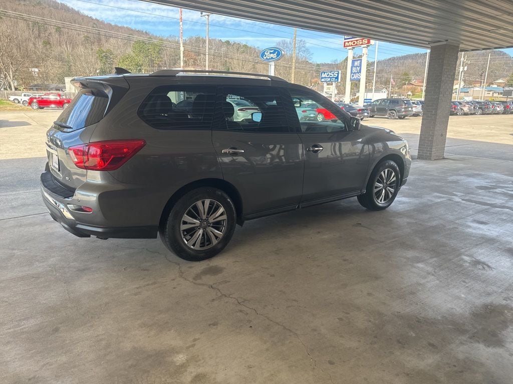 Moss Motor Company is pleased to offer this 2019 Nissan Pathfinder SL in Gun Metallic equipped with: 3rd row seats: bench, 4-Wheel Disc Brakes, 5.25 Axle Ratio, 6 Speakers, ABS brakes, Air Conditioning, Alloy wheels, AM/FM radio: SiriusXM, AM/FM/CD Audio System, Auto-dimming Rear-View mirror, Automatic temperature control, Blind Spot Warning, Bluetooth / Hands Free Cell Phone, Bose Premium Audio System, Brake assist, Bumpers: body-color, Carpeted Floor Mats (4-pc Set), CD player, Compass, Delay-off headlights, Driver door bin, Driver vanity mirror, Dual front impact airbags, Dual front side impact airbags, Electronic Stability Control, Emergency communication system: NissanConnect Services, Four wheel independent suspension, Front anti-roll bar, Front Bucket Seats, Front Center Armrest, Front dual zone A/C, Front fog lights, Front reading lights, Fully automatic headlights, Garage door transmitter: HomeLink, Heated door mirrors, Heated Front Bucket Seats, Heated front seats, Heated rear seats, Heated steering wheel, Illuminated entry, Leather Seating Surfaces, Leather Shift Knob, Leather steering wheel, Low tire pressure warning, Memory seat, Navigation System, NissanConnect w/Navigation & Services, Occupant sensing airbag, Outside temperature display, Overhead airbag, Overhead console, Panic alarm, Passenger door bin, Passenger vanity mirror, Power door mirrors, Power driver seat, Power Liftgate, Power passenger seat, Power steering, Power windows, Radio data system, Rear air conditioning, Rear anti-roll bar, Rear Back Up Camera, Rear Parking Sensors, Rear reading lights, Rear seat center armrest, Rear window defroster, Rear window wiper, Reclining 3rd row seat, Remote keyless entry, Roof rack: rails only, Security system, SiriusXM Traffic, Speed control, Speed-sensing steering, Speed-Sensitive Wipers, Split folding rear seat, Spoiler, Steering wheel mounted audio controls, Tachometer, Telescoping steering wheel, Tilt steering wheel, Traction control, Trip computer, Turn signal indicator mirrors, Variably intermittent wipers, and Wheels: 18" x 7.5 J Machined Aluminum-Alloy!