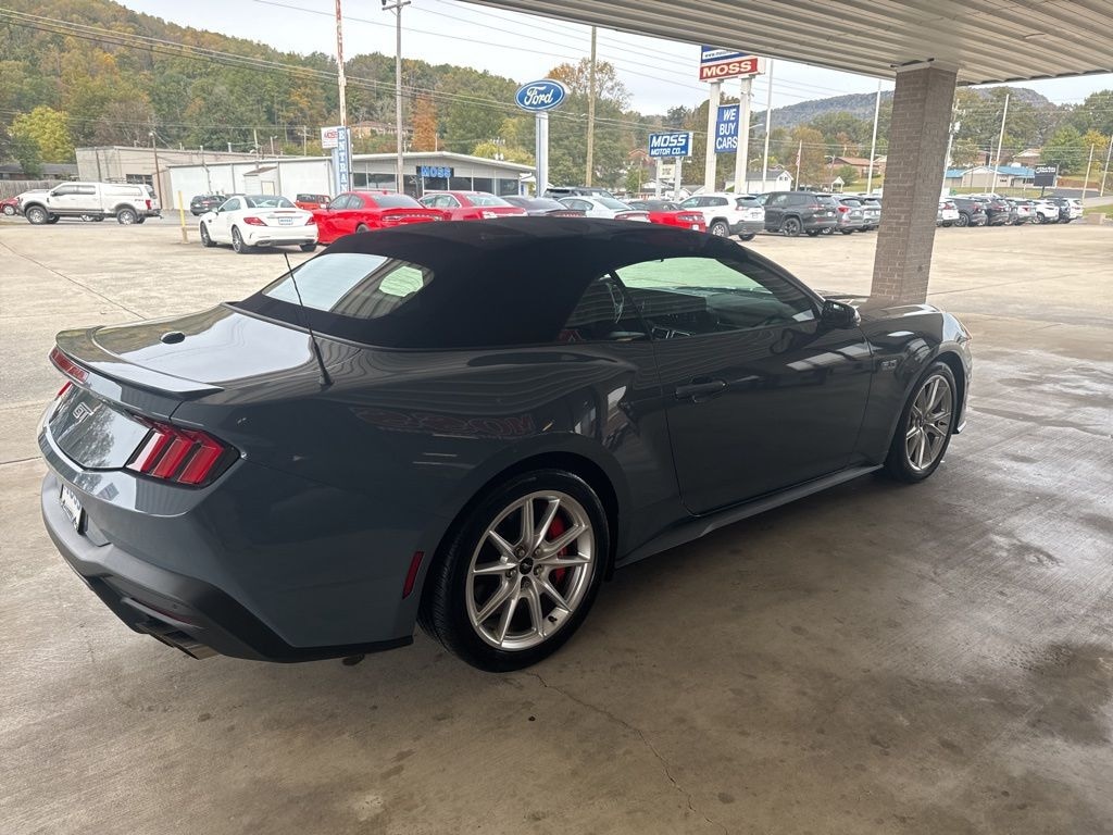Moss Motor Company is pleased to offer this 2025 Ford Mustang GT Premium in Vapor Blue equipped with: Equipment Group 400A Standard Package, Ford Co-Pilot360 Assist+, Security Package (Active Anti-Theft System, Locking Center Console, and Wheel Locking Kit), Ford Gold Certified Certified, Apple CarPlay / Android Auto, Bluetooth / Hands Free Cell Phone, Leather Seats, Rear Back Up Camera, Service Records Available, 3.55 Limited Slip Rear Axle, 4-Wheel Disc Brakes, 9 Speakers, ABS brakes, Active Valve Performance Exhaust, Air Conditioning, Alloy wheels, AM/FM radio: SiriusXM with 360L, AM/FM Stereo, Auto High-beam Headlights, Auto-dimming Rear-View mirror, Automatic temperature control, B&O Sound System by Bang & Olufsen w/12 Speakers, Brake assist, Brembo Brake System w/Performance Linings, Bumpers: body-color, Climate Controlled Heated/Cooled Front Seats, Compass, Convertible roof lining, Delay-off headlights, Driver door bin, Driver vanity mirror, Dual front impact airbags, Dual front side impact airbags, Electronic Stability Control, Emergency communication system: 911 Assist, Exterior Parking Camera Rear, Four wheel independent suspension, Front anti-roll bar, Front Bucket Seats, Front Center Armrest, Front dual zone A/C, Front reading lights, Fully automatic headlights, Garage door transmitter, Glass rear window, HD Radio, Heated door mirrors, Heated front seats, Heated steering wheel, Illuminated entry, Knee airbag, Leather Shift Knob, Leather steering wheel, Low tire pressure warning, Occupant sensing airbag, Outside temperature display, Overhead console, Panic alarm, Passenger door bin, Passenger vanity mirror, Power convertible roof, Power door mirrors, Power driver seat, Power passenger seat, Power steering, Power windows, Premium Floor Liners Front & Rear (w/Carpet Mats), Radio data system, Rain sensing wipers, Rear anti-roll bar, Rear Parking Sensors, Rear window defroster, Red Painted Brake Calipers w/White Logo, Remote keyless entry, Security system, SiriusXM w/360L, Speed control, Speed-sensing steering, Speed-Sensitive Wipers, Spoiler, Sport steering wheel, Steering wheel mounted audio controls, SYNC 4, Tachometer, Telescoping steering wheel, Tilt steering wheel, Traction control, Trip computer, Turn signal indicator mirrors, Variably intermittent wipers, Ventilated front seats, Voltmeter, and Wheels: 19" x 8.5" Shadow Silver-Painted Aluminum!